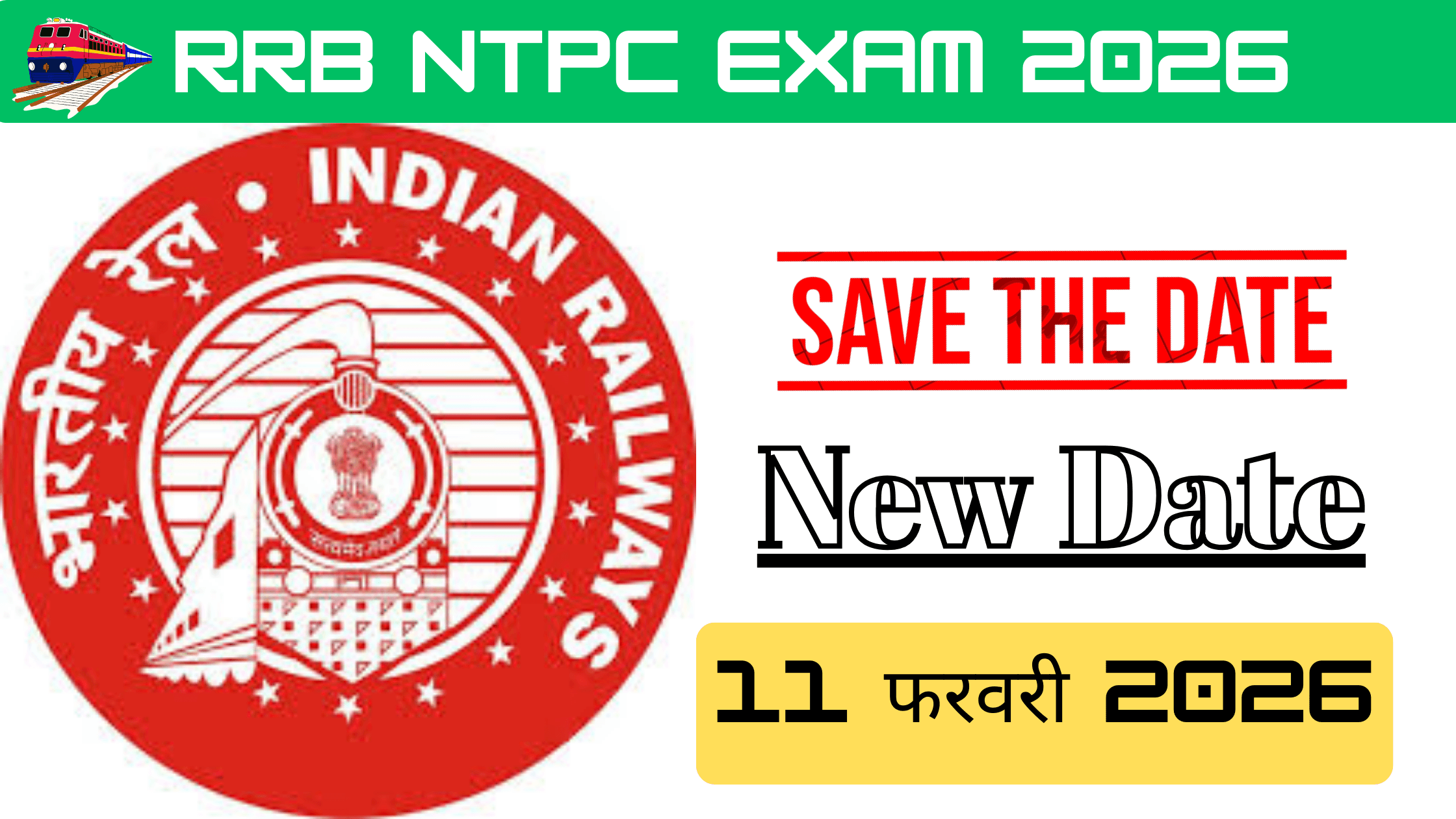 Railway Ntpc परीक्षा, रद्द कर दिया गया है रेलवे एनटीपीसी का परीक्षा जो लोगो ने 30 दिसंबर 2025 को हुआ था बो रद्द कर दिया गया है Railway Ntpc एग्जाम की नई डेट आ गई है, अब एग्जाम डेट फरवरी में दे दी गई है। NTPC का यह एग्जाम टेक्निकल इशू की वजह से कैंसल किया गया था। यह रेलवे NTPC का एग्जाम ग्रेजुएट बच्चों के लिए है। इस एनटीपीसी के एग्जाम में एससी/एसटी बच्चों के लिए बस यात्रा फ्री है। इसलिए सब कैंडिडेट एक बार RRB की ऑफिशियल वेबसाइट पर जाकर अपनी डिटेल चेक कर लें।